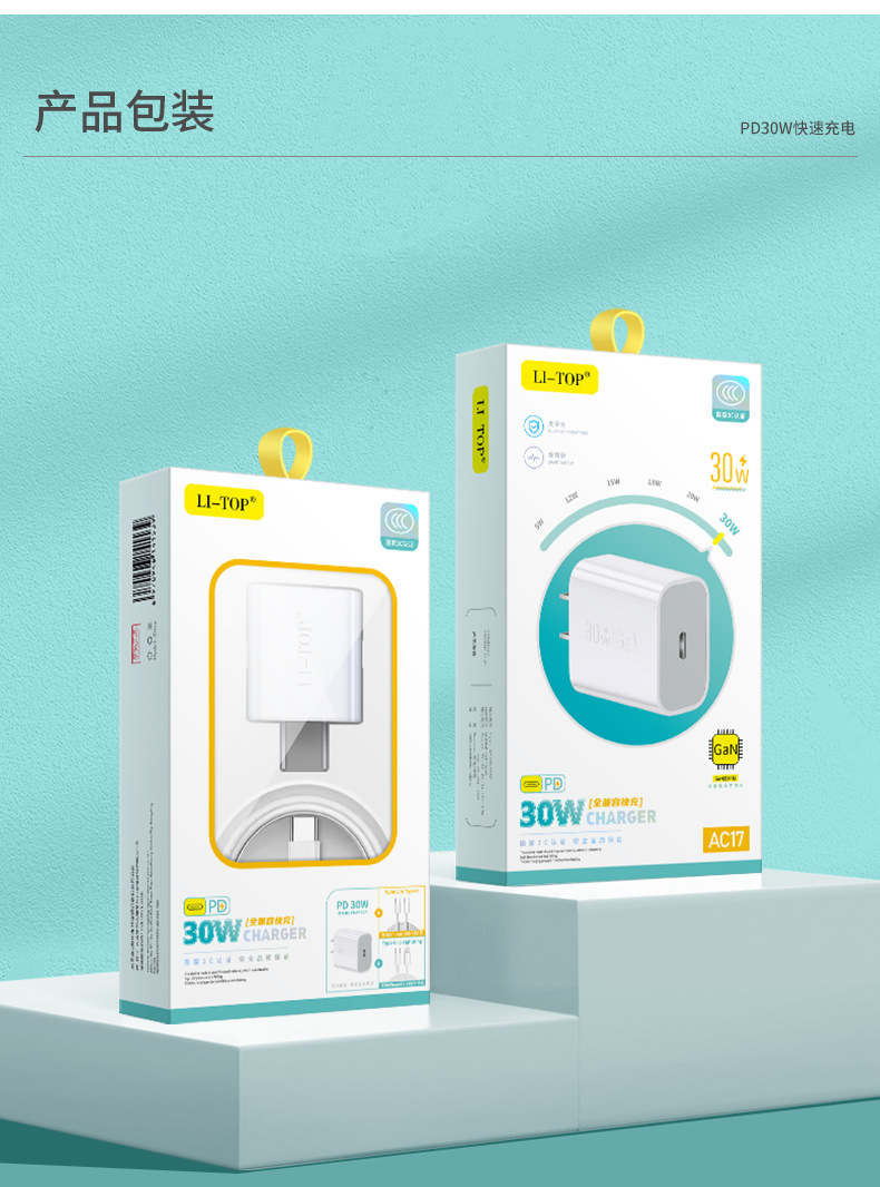 Bộ sạc nhanh LI-TOP GaN AT17 chân Type C công suất PD 30W, có chứng nhận 3C tiêu chuẩn quốc gia, hàng chính hãng, cho dùng thử 30 ngày hoàn trả