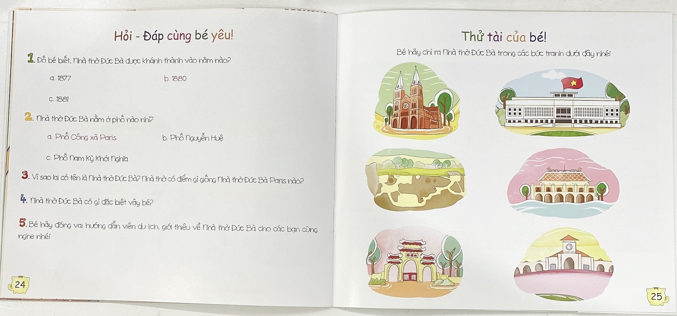 - Mình ghé Lăng Ông - Bà Chiểu Với nội dung được chọn lọc kỹ lưỡng, ngôn từ đi dỏm cùng tranh minh họa sinh động, đáng yêu, bộ sách Sài Gòn du ký - Song ngữ sẽ giúp bé lần lượt “ghé thăm” các địa danh nổi tiếng như: Chợ Bến Thành, Dinh Thống Nhất, Nhà thờ Đức Bà Qua đó, bé sẽ học hỏi được nhiều kiến thức về văn hóa, lịch sử gắn với mảnh đất Sài Gòn thân yêu! Đặc biệt, bộ sách này được được thiết kế dạng song ngữ Anh - Việt giúp các bé tiếp cận, làm quen với Tiếng Anh bằng những câu hỏi đơn giản, dễ nhớ.