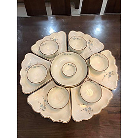 Set đĩa hoa mặt trời gốm sứ Bát Tràng cao cấp men trắng sang chảnh 1 set gồm : 1 bát tô , 6 đĩa cánh hoa , 6 bát cơm, 1 bát mắm ,