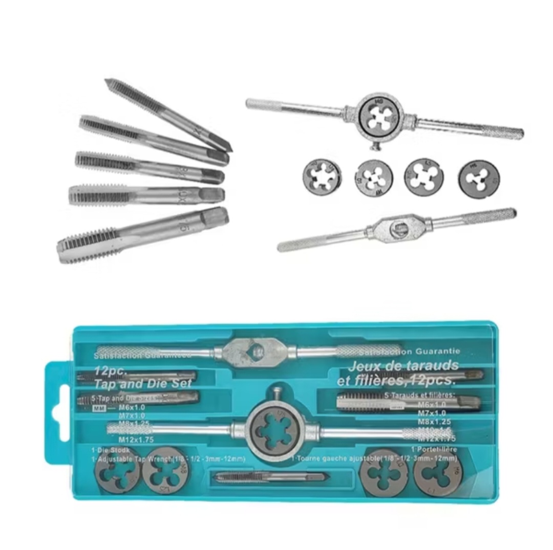 tạo ren ❥Đặc điểm: Bộ taro 12 chi tiết - Bộ taro ren ngoài M6-12: M6x1.0, M7x1.0, M8x1.25, M10x1.5, M12x1.75 - Bộ taro tạo ren trong M6-M12: M6x1.0, M7x1.0, M8x1.25, M10x1.5, M12x1.75 - Tay quay