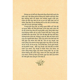 Trong kinh Duy Ma, ta thấy quan điểm về Tịnh độ và quan điểm về thế giới được trình bày một cách rất rõ rệt. Kinh Duy Ma chú trọng đến cuộc sống hiện thực chứ không nhắm tới sự trốn tránh khổ đau trong một cõi Niết bàn nào khác. Cõi Tịnh độ đẹp đẽ hay khổ đau; những hoàn cảnh đó, những y báo đó, đều do nhân cách của con người định đoạt. Tâm của mình như thế nào thì thế giới của mình như thế đó. Tất cả tùy thuộc vào cách sống của mình trong ngày hôm nay.