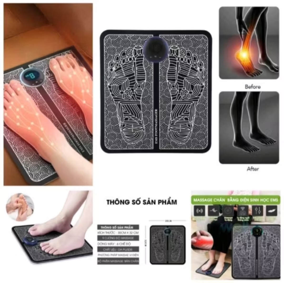 - Áp dụng rộng rãi: Thảm massage chân EMS được thiết kế tỉ mỉ dành cho những người yêu thích thể thao, người lớn tuổi, người lao động ngồi / đứng (đặc biệt là đi giày cao gót) trong thời gian dài, mang lại cảm giác thư giãn tuyệt vời và giảm đau nhức cho bàn chân và chân. Thông số sản phẩm Thảm Massage Chân Xung Điện EMS Mát Xa Bàn Chân, Giúp Lưu Thông Khí Huyết, Giảm Đau Mỏi