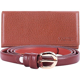 Bộ Ví & Thắt lưng nữ Huy Hoàng da bò màu da 3136-5109