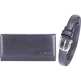 Bộ Ví & Thắt lưng nữ Huy Hoàng da bò màu đen 3137-5110