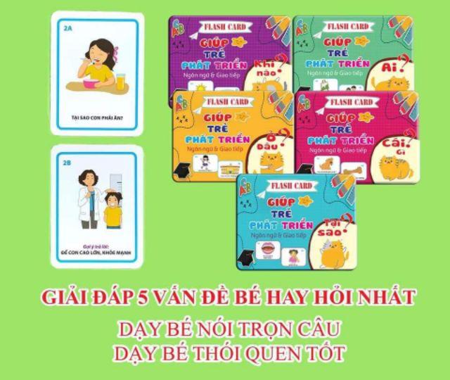 Bộ thẻ flashcards giúp trẻ phát triển ngôn ngữ và giao tiếp,gồm 5 chủ đề: Ai? , Cái gì? , Tại Sao? , Khi Nào? Ở Đâu?