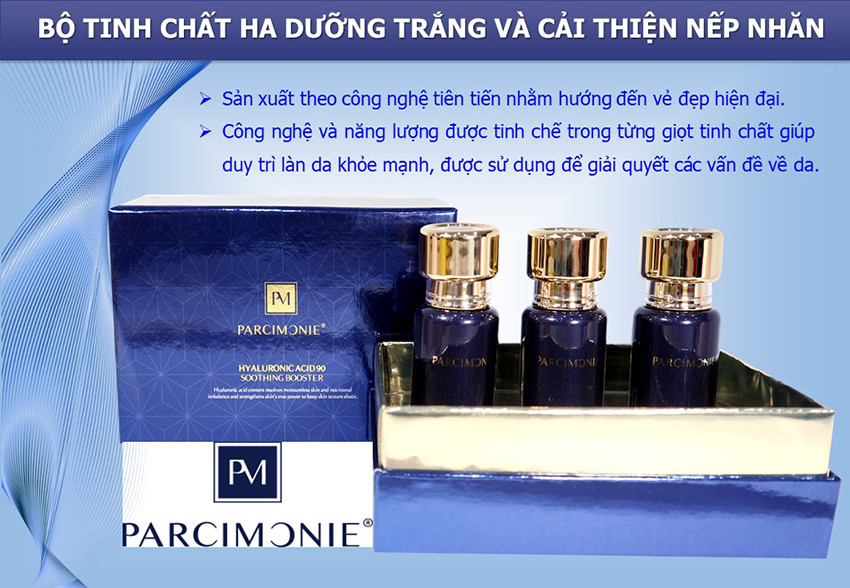 Với Parcimonie Hyaluronic Acid 90 Soothing Booster có tác dụng hiệu quả trong việc dưỡng trắng da an toàn và phù hợp với mọi loại da đồng thời nuôi dưỡng làn da khỏe mạnh, tăng độ đàn hồi và giúp da tràn đầy sức sống và cải thiện nhanh chống tình trạng khô da.