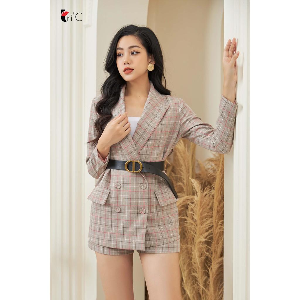 ✨Bộ vest kẻ caro quần short ghi hồng Tri'C Luxury V031120