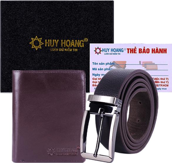 Bộ Bóp & Dây nịt nam Huy Hoàng da bò màu nâu 2109-4121