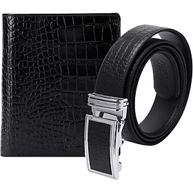 Mua tại Tiktok- Bộ Ví & Thắt Lưng Nam Vân Cá Sấu HT2120-HT4114 (23 x 11,5 cm) - Đen