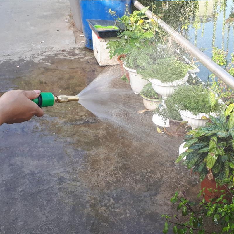 Tăng 300% áp lực nước so với vòi thường Vật liệu : đầu vòi bơm làm bằng đồng tạo độ chắc chắn, không hoen rỉ Đa chức năng Tưới cây, tưới hoa, rửa xe, vệ