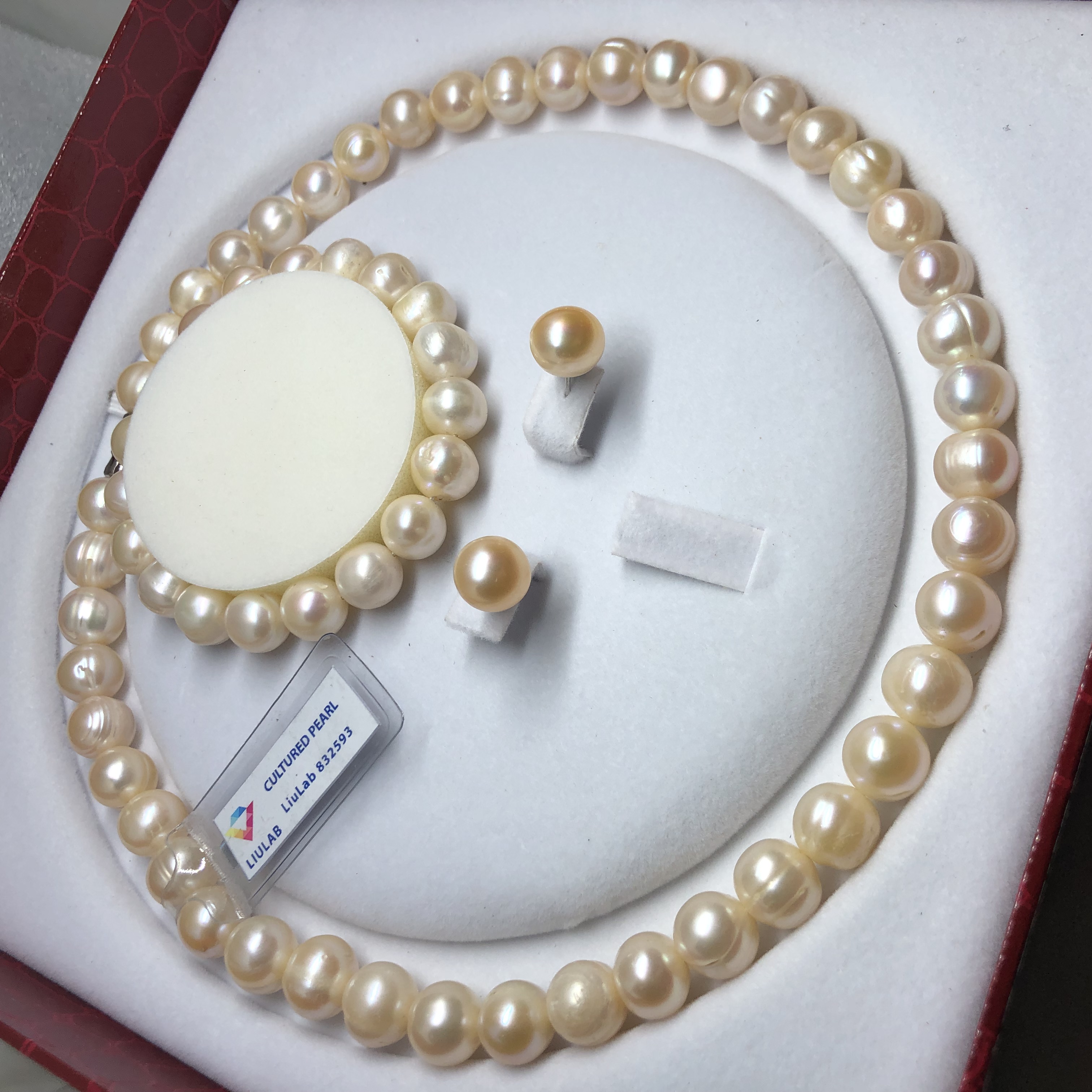 Combo gồm 3 sản phẩm: vòng cổ, vòng tai và bông tai. Được chế tác từ NT nuôi nước ngọt Phong thủy Gia Phát chuyên cung cấp mẻo thần tài may mắn. vật phẩm phong