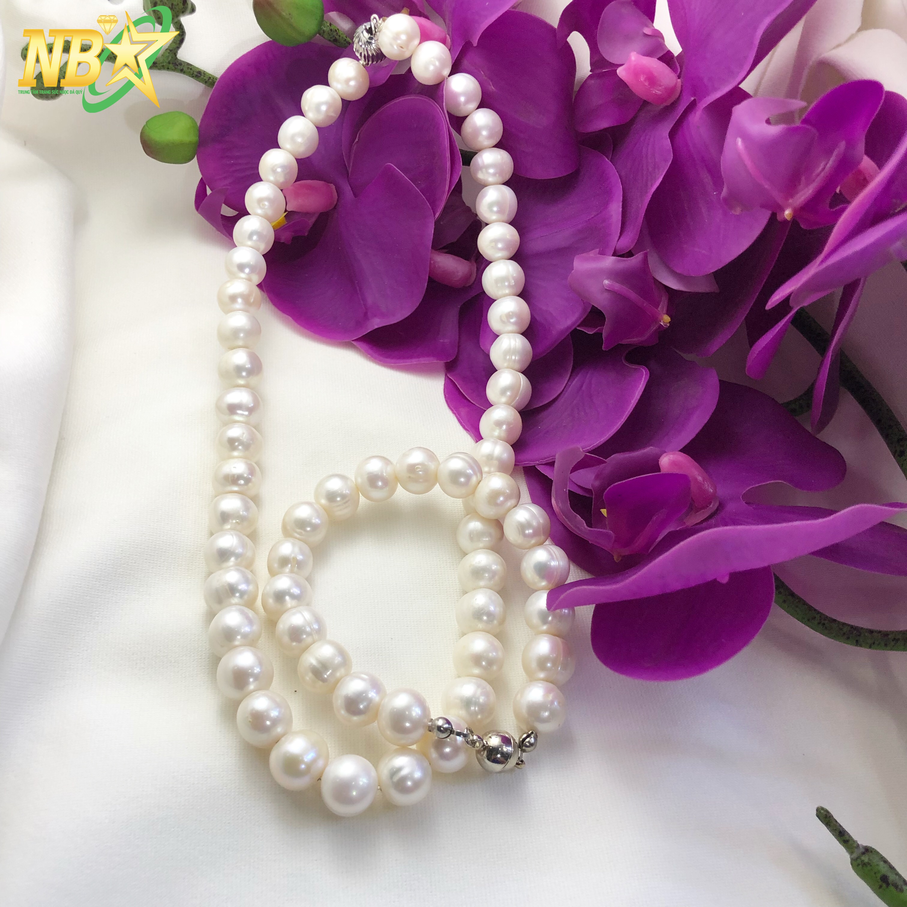 NGỌC TRAI TRẮNG 4A-BNTT009 * THÔNG TIN SẢN PHẨM: BỘ VÒNG CỔ- TAY NGỌC TRAI TRẮNG - Chất liệu: Ngọc trai nuôi tự nhiên nước ngọt - Chiều dài: 43- 48cm - Kích thước: 10mm-11mm