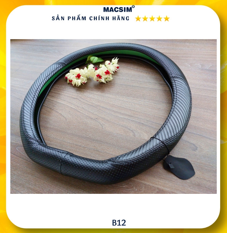 Bọc vô lăng cao cấp Macsim mã Dcut B12 màu đen chỉ đen chất liệu da thật 100%,- chất liệu da thật 100%, lõi ruột vô lăng được sản xuất từ silicon cao cấp mềm mại dẻo dai không gây hại cho vô lăng nguyên bản theo xe, an toàn cho sức khỏe người sử dụng. Bọc vô lăng Macsim khâu tay thủ công size M phù hợp các loại xe.