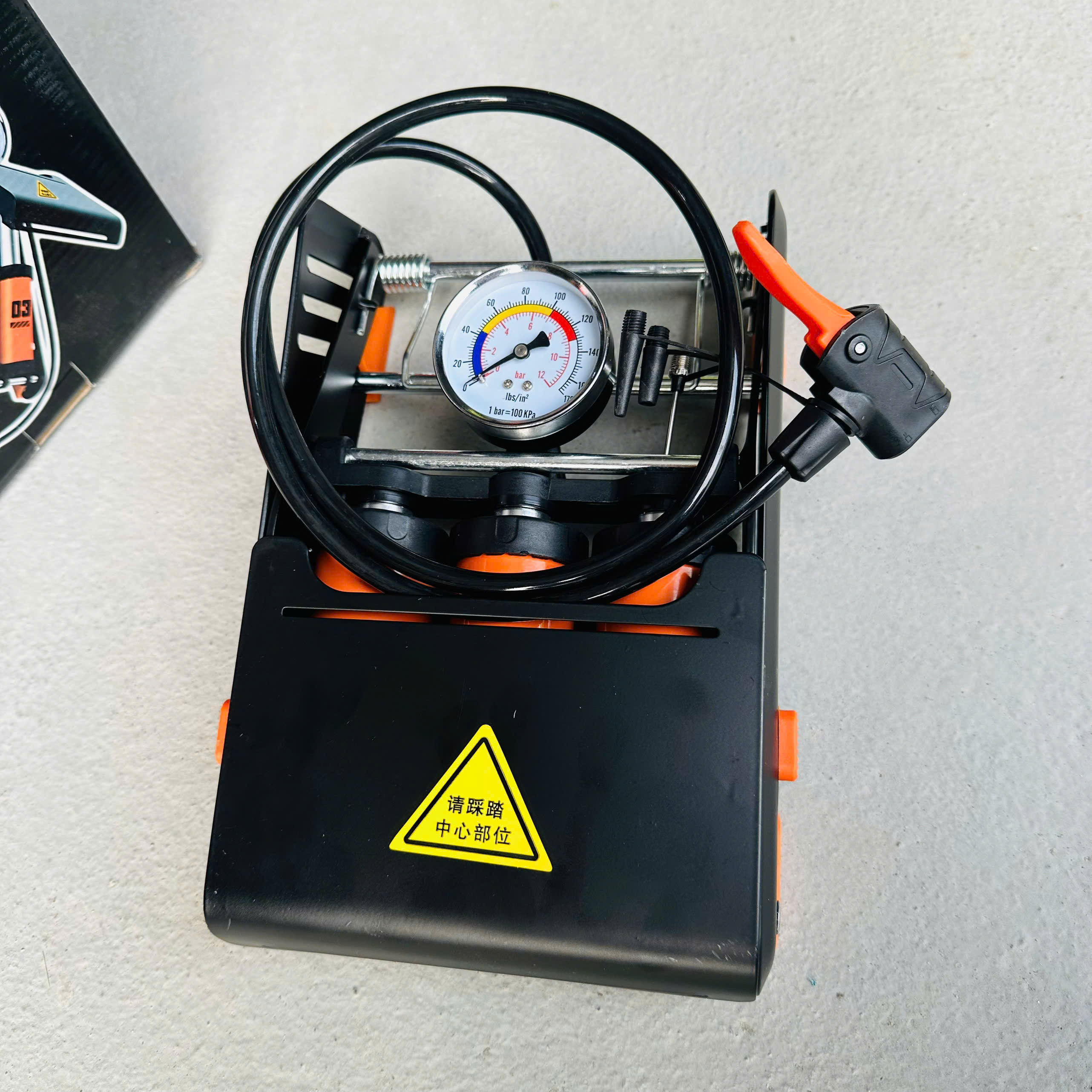 ✨Bơm đạp chân xe đạp xe máy KAPUSI 3 ống xilanh bền đẹp - màu cam đen