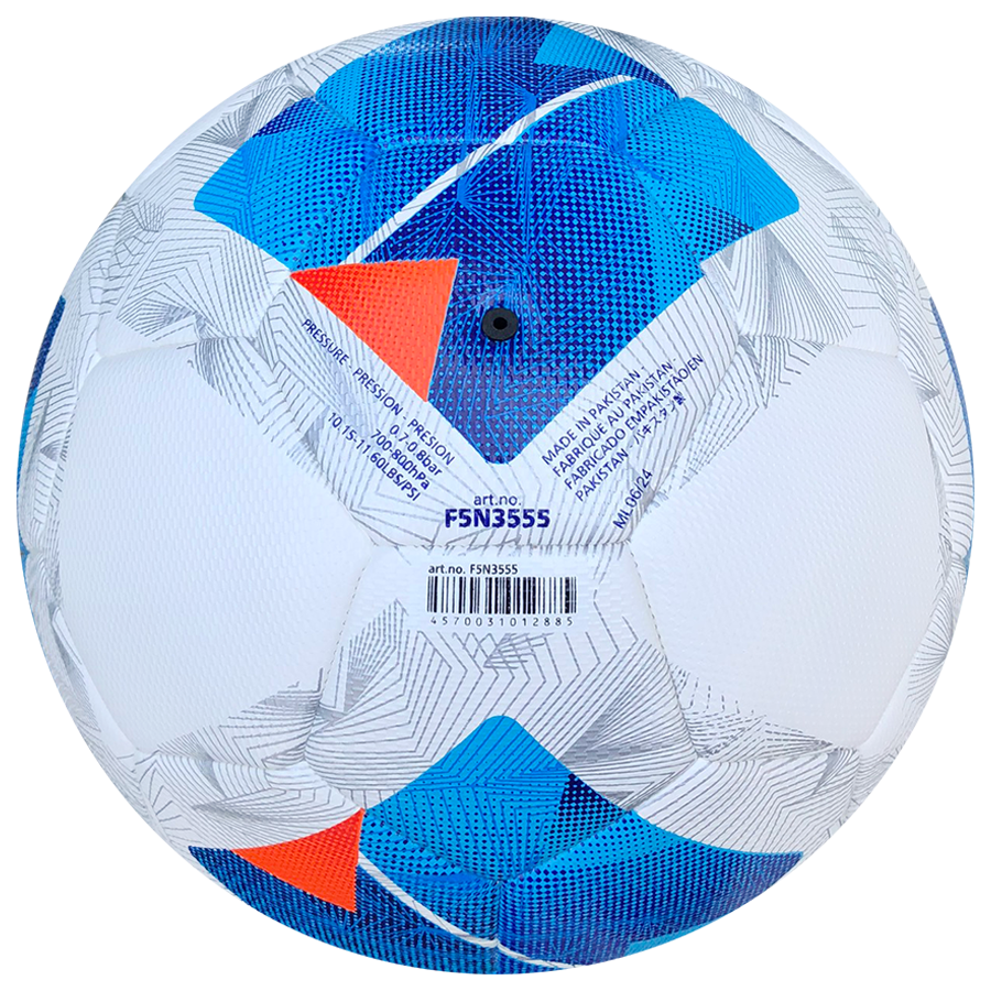Tiêu chuẩn FIFA Quality ProMã sản phẩm: F5N3555Size: 5Số miếng ghép: 32Màu: Trắng – Xanh – CamSản xuất tại: PakistanChất liệu: Da PUBề mặt: Vân nổi cao cấp tăng ma sát dễ kiểm soát và nâng cao...
