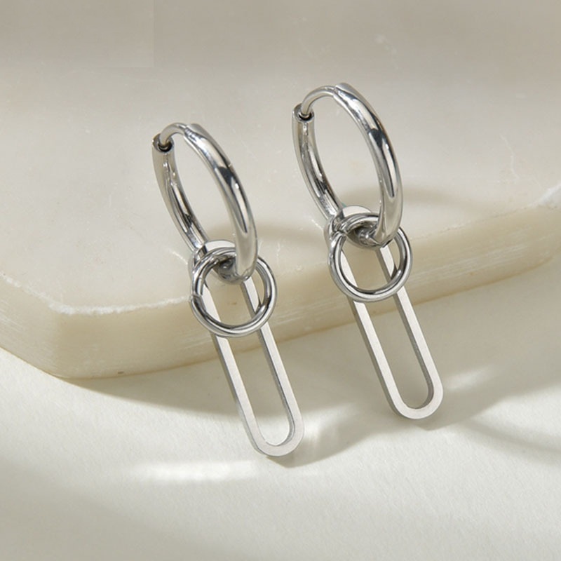 Chất liệu Titan bền đẹp, không han gỉ và an toàn khi sử dụng. Thiết kế xỏ lỗ tròn phối hình tròn mini và chữ nhật. Kiểu dáng đơn giản, mạnh mẽ, xu hướng thời