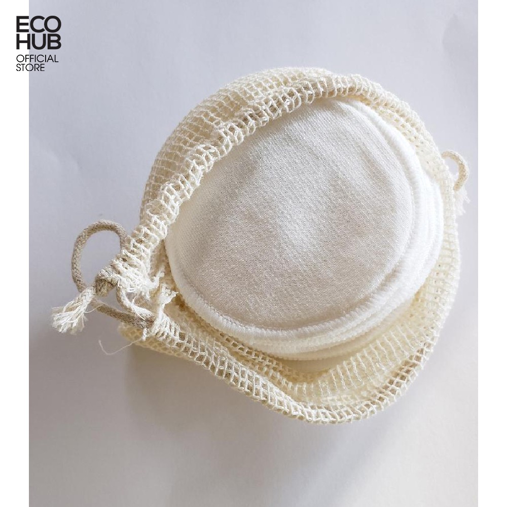 ✨Bông tẩy trang ECOHUB Sợi tre tái sử dụng nhiều lần / Thân thiện Môi trường, 8x8cm (6 miếng + Túi lưới)