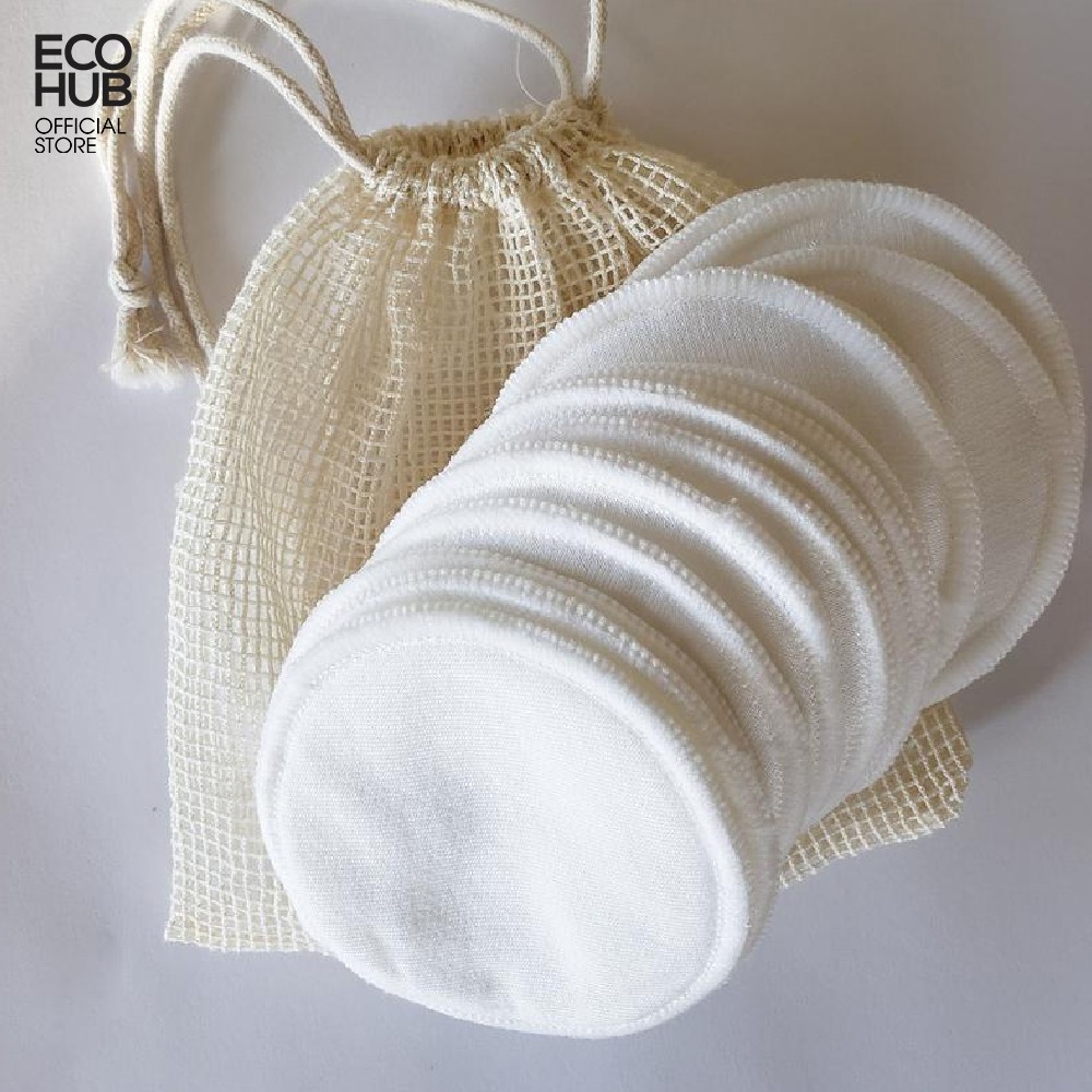 Bông tẩy trang ECOHUB Sợi tre tái sử dụng nhiều lần / Thân thiện Môi trường, 8x8cm (6 miếng + Túi lưới)   -----  THÔNG SỐ:   - Kích thước: 8x8cm   - Chất liệu: Sợi
