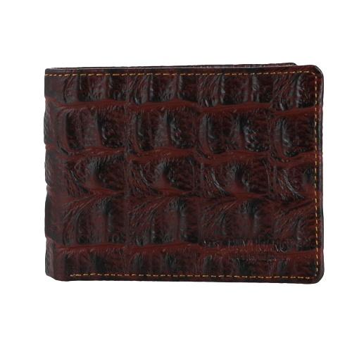 Ví/Bóp nam Huy Hoàng da bò vân cá sấu màu nâu đỏ 2148