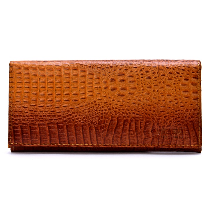 Ví nữ/Bóp nữ da bò vân cá sấu Huy Hoàng 2 gấp vân lớn màu đen, nâu, vàng bò 3116-17-18