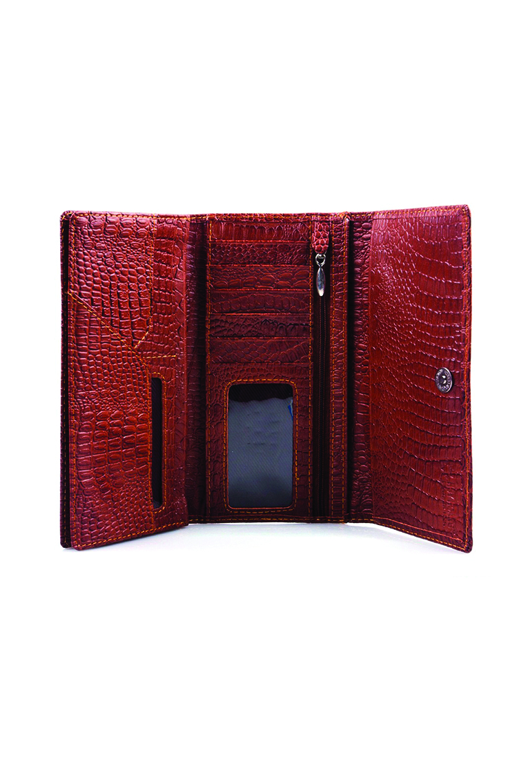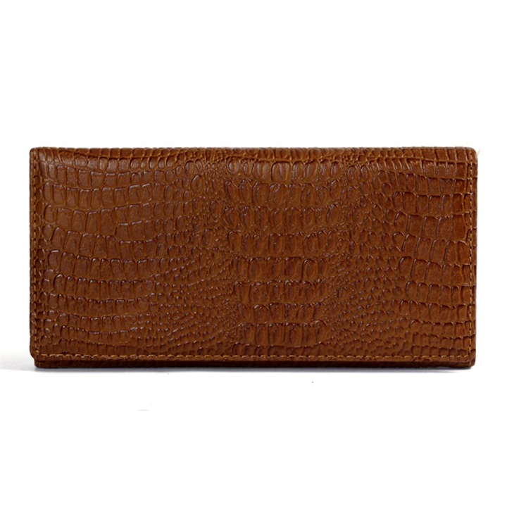 Ví/Bóp nữ Huy Hoàng da bò vân cá sấu 3 gấp màu nâu 3107