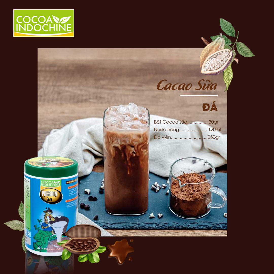 Mua tại Tiktok- Bột Cacao Hòa Tan Passion 3 In 1 Cocoa Indochine có mùi vị thơm ngon, giàu dinh dưỡng với sự kết hợp độc đáo giữa hương Sôcôla đen thơm nồng và hương vị Cappuccino đầy mê hoặc.