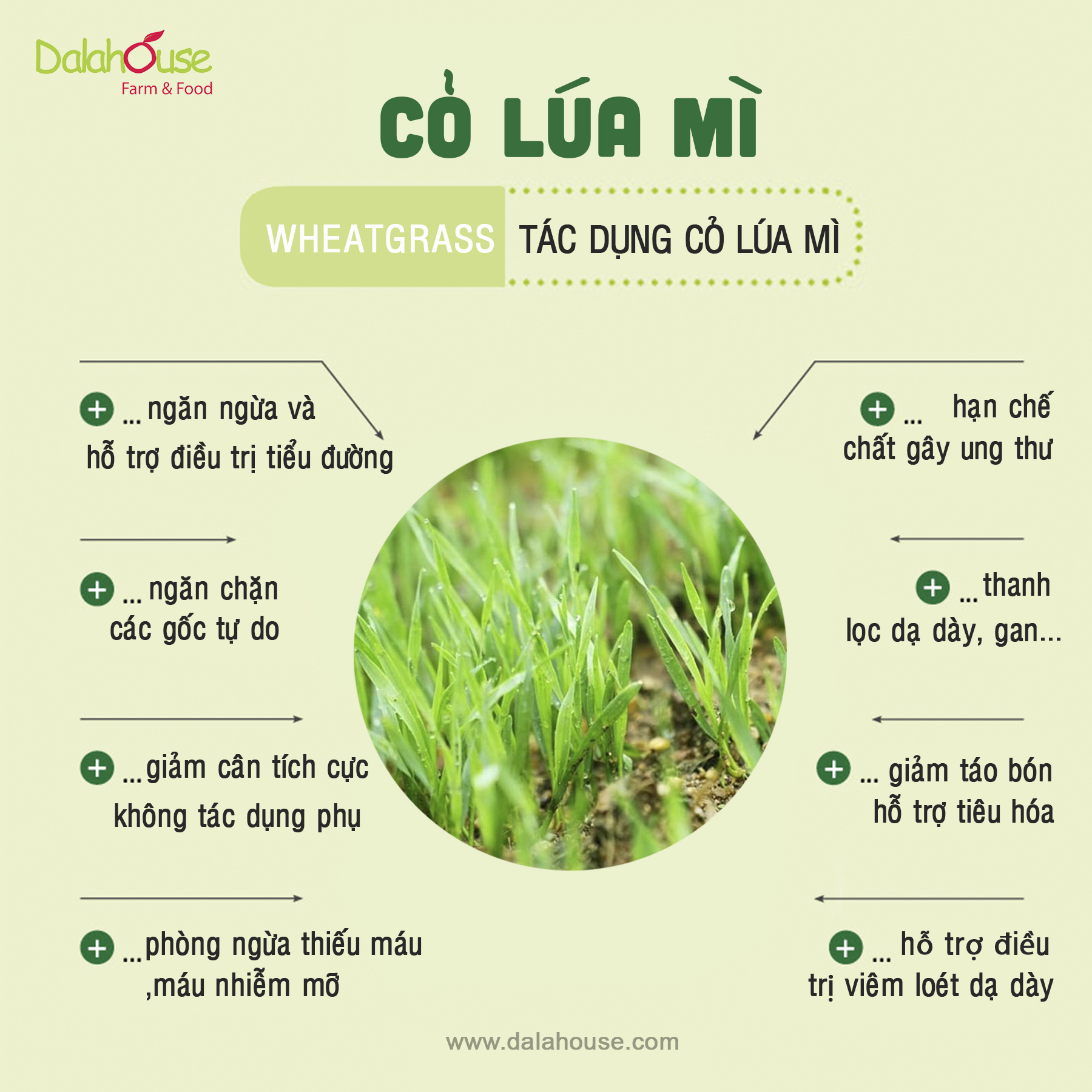 Bột cỏ lúa mì hữu cơ Dalahouse, hỗ trợ cải thiện hệ tiêu hóa, bổ sung vitamin và các khoáng chất.