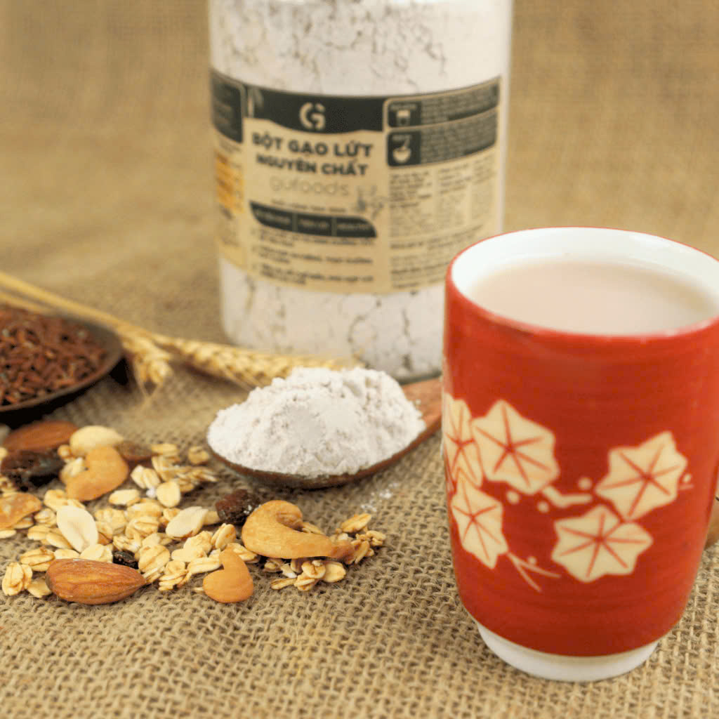 - Bột uống: Khuấy đều 2 muỗng cà phê bột gạo lứt trong một ly nước sôi 150ml. Có thể bổ sung thêm đường, sữ cho vừa uống.