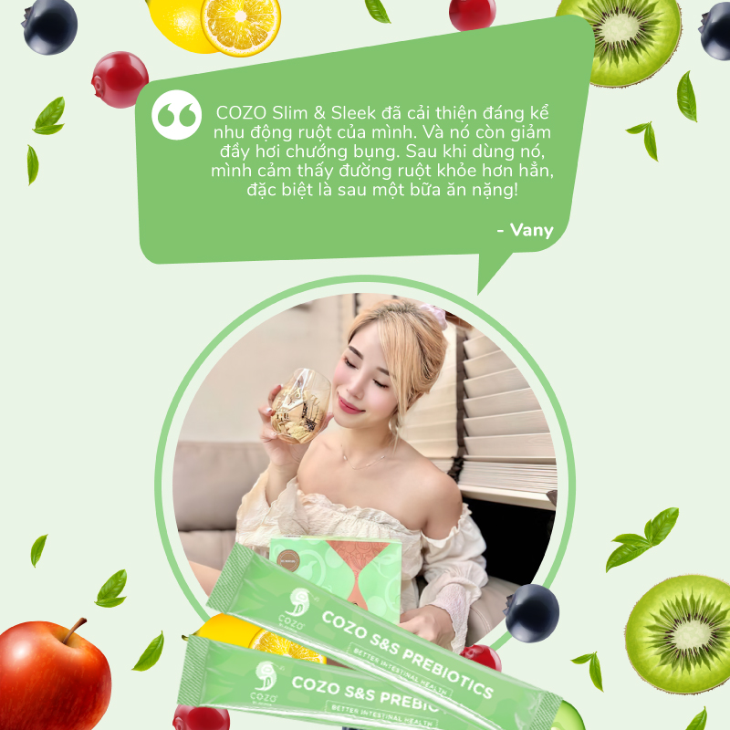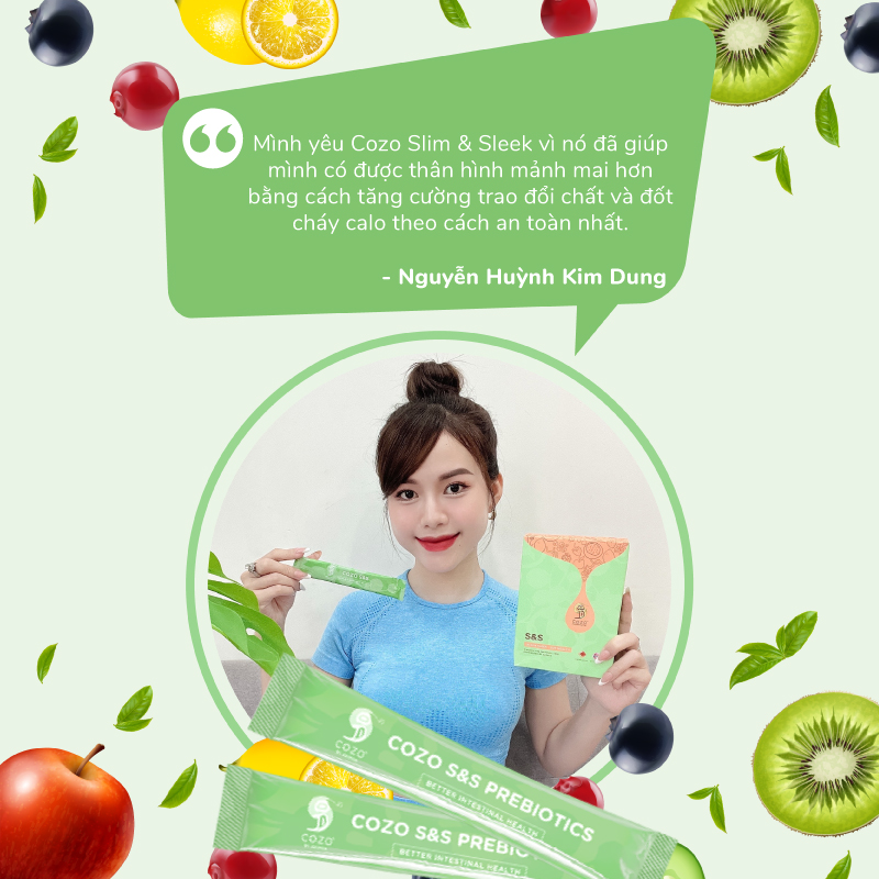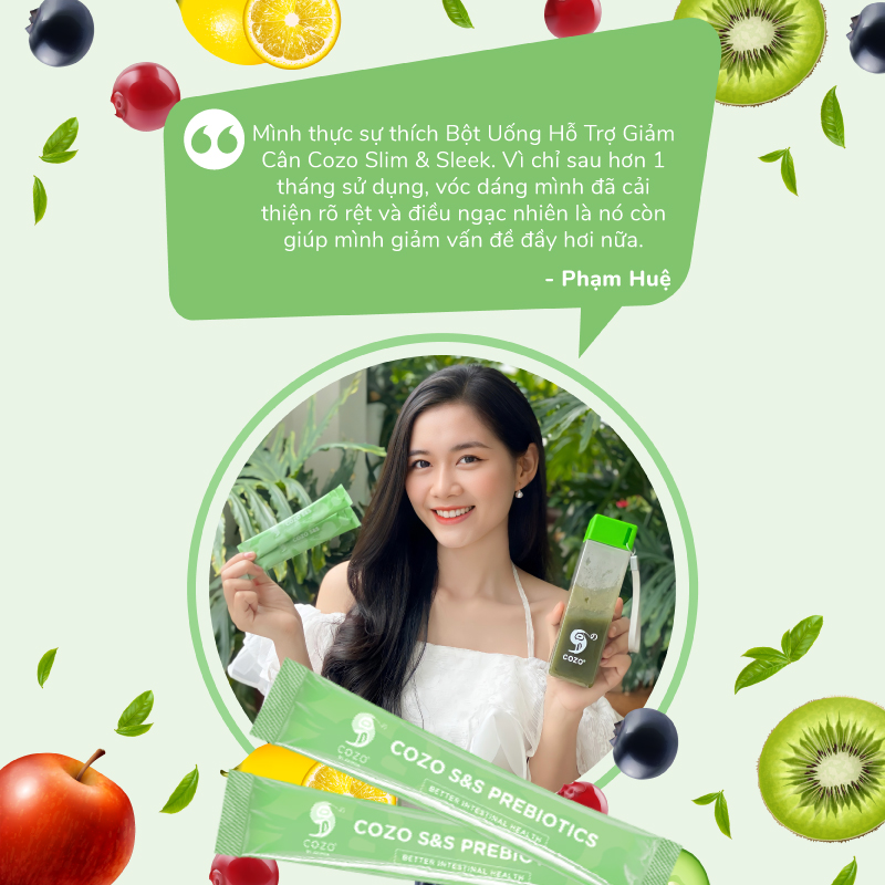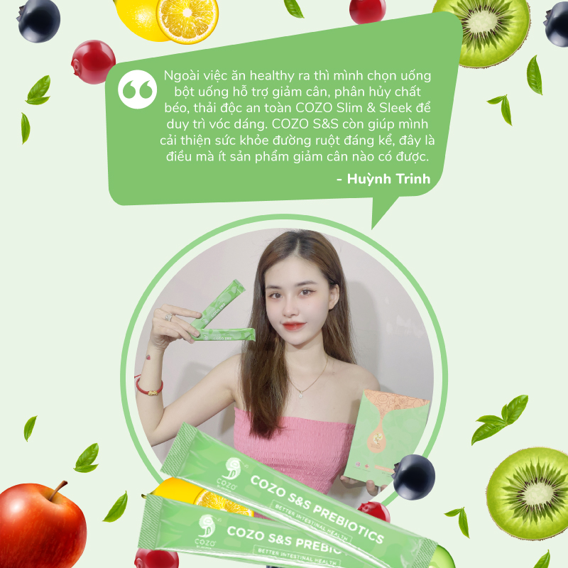 Bột Uống Hỗ Trợ Giảm Cân, Đốt Mỡ, Phân Hủy Chất Béo, Giảm Carbohydrate Cozo Slim & Sleek An Toàn Cho Dạ Dày - Hộp 15 Gói Giải quyết vấn đề đường ruột với Cozo