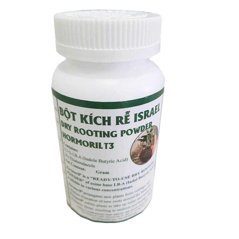 BỘT KÍCH RỄ ISRAEL DÀNH CHO CÂY THÂN GỖ – HORMORIL T6 – Nhập khẩu: Israel – Chức năng: dùng kích thích ra rễ, giúp rễ cây phát triển nhanh và an toàn 90%. Đặc