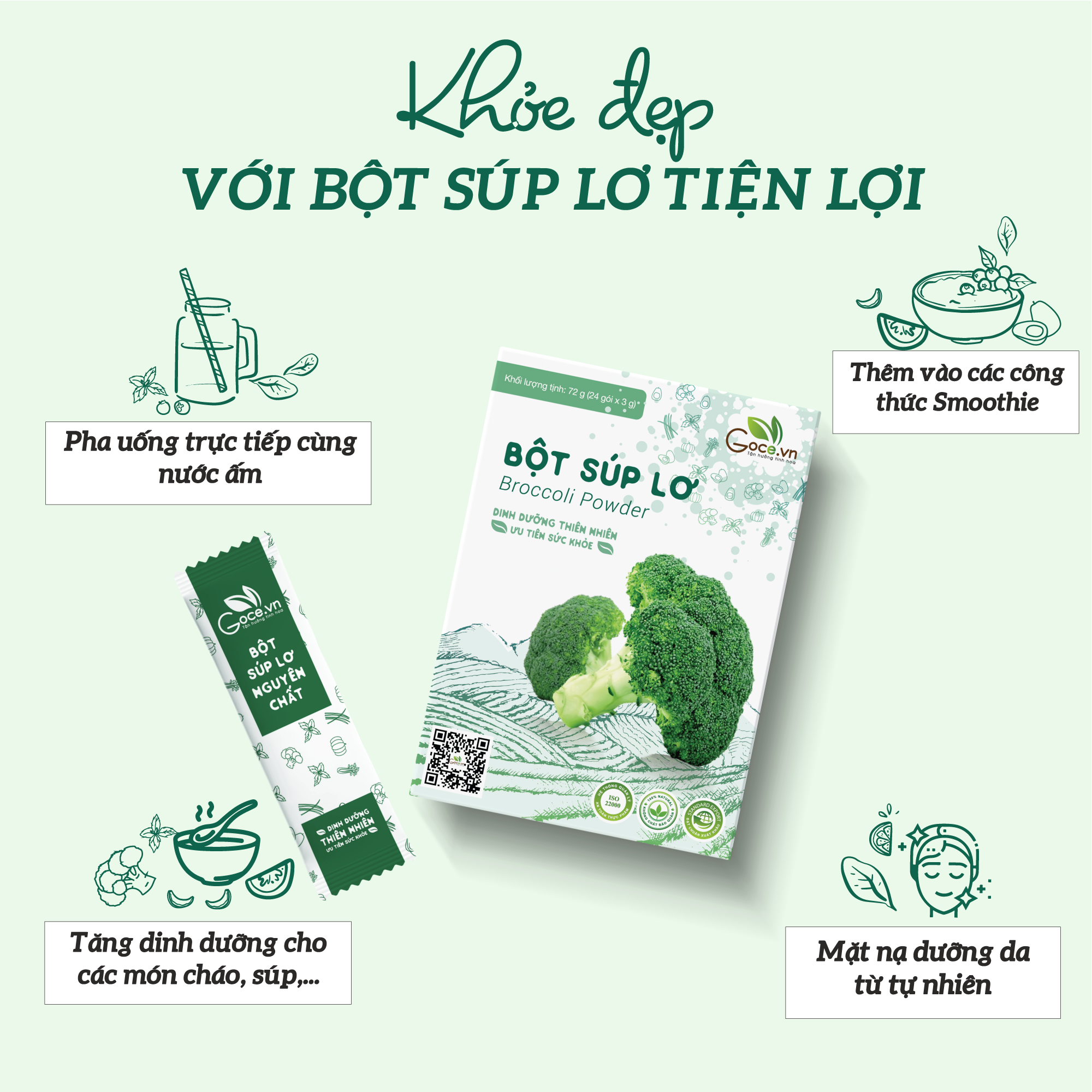 ✨Bột súp lơ nguyên chất Goce (Bông cải xanh) - 72g (24 gói x 3g)