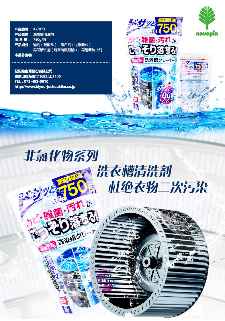 Bột tẩy lồng máy giặt sinh học, không chứa Clo 750g ■ Xuất xứ: Nhật Bản | MADE IN JAPAN ■ NSX: Kiyo Jochugiku Co., Ltd (Japan) ■ Model: K-7073 ■ Kích thước: 25,8cm×15,8cm×7,5cm ■ Màu sắc: Màu trắng