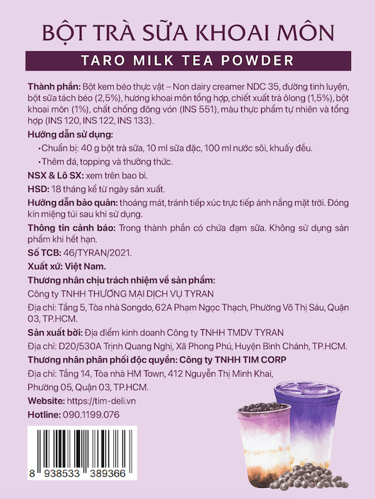 THÔNG TIN SẢN PHẨM Tên sản phẩm: Set Nguyên Liệu Pha Trà Sữa Khoai Môn (Thành phẩm 30 35 ly) VietTin Mart Thành phần: Trân châu đen, trắng Bột khoai môn Trà đen Bột kem