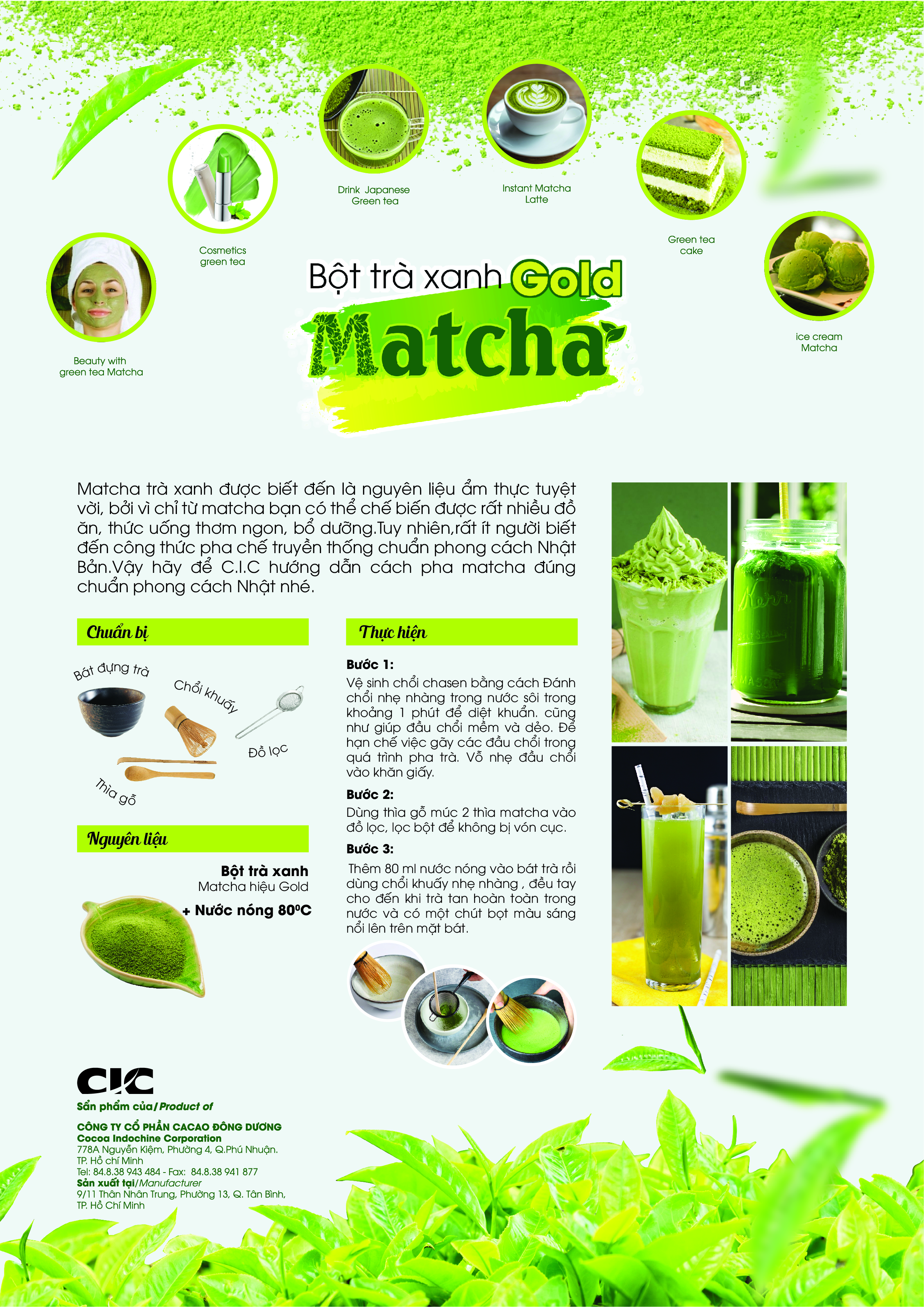 - Xuất xứ: Nhật Bản - Quy cách: 80gr - Matcha là bột được nghiền từ những lá trà xanh tươi, trồng chuyên biệt dưới lớp nilong khiến cho tia nắng mặt trời không chiếu thẳng xuống là