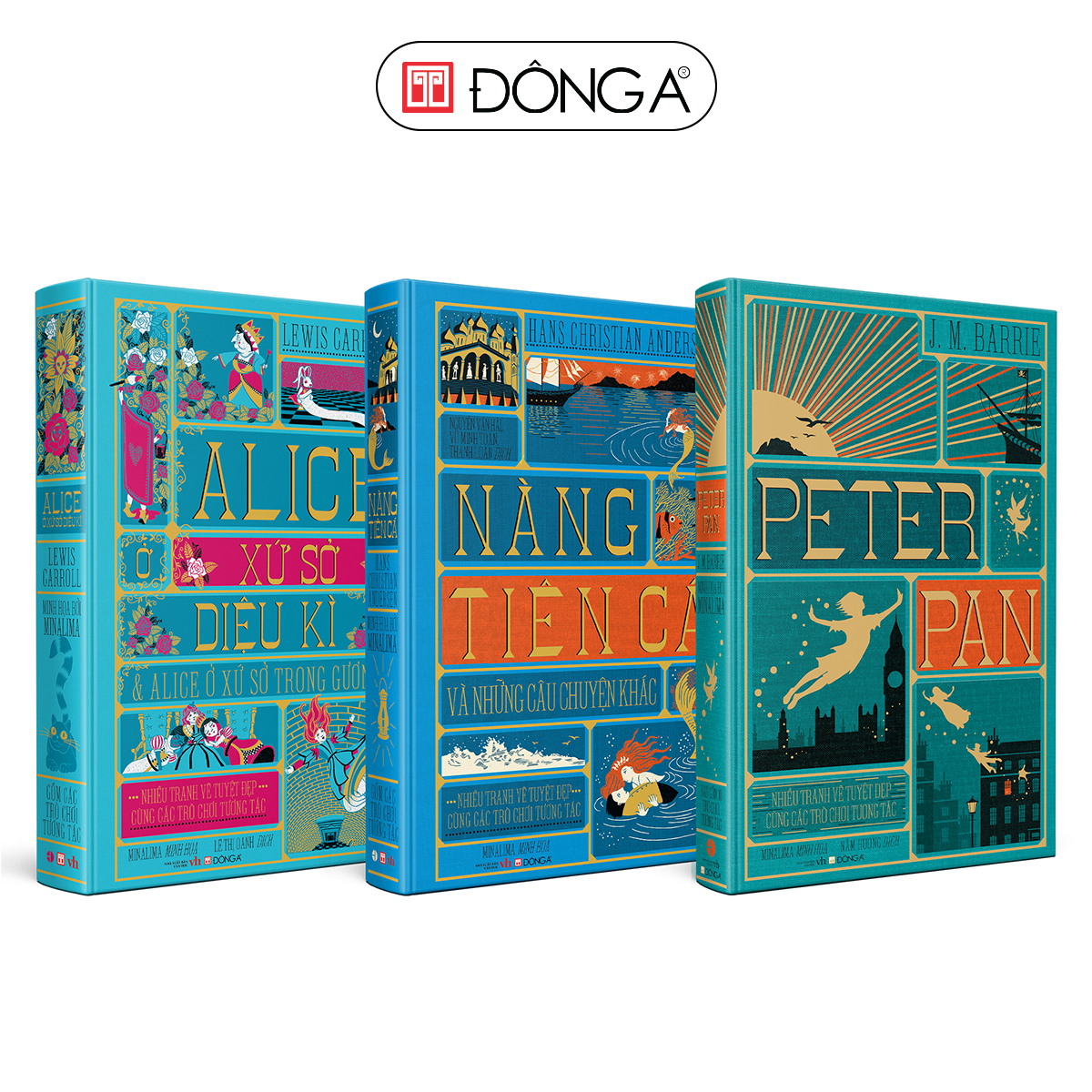 Các ấn phẩm do MinaLima minh họa mà Đông A đã xuất bản gồm Peter Pan, Nàng tiên cá và những câu chuyện khác, Alice ở xứ sở diệu kì & Alice ở xứ sở trong gương. Những hình minh họa hoàn toàn mới cùng các trò chơi tương tác độc quyền từ studio thiết kế MinaLima sẽ mang đến một hành trình trở về tuổi thơ cho độc giả ở mọi lứa tuổi. Boxset ba tác phẩm kinh điển này là món quà đầy màu sắc dành cho các bạn nhỏ.