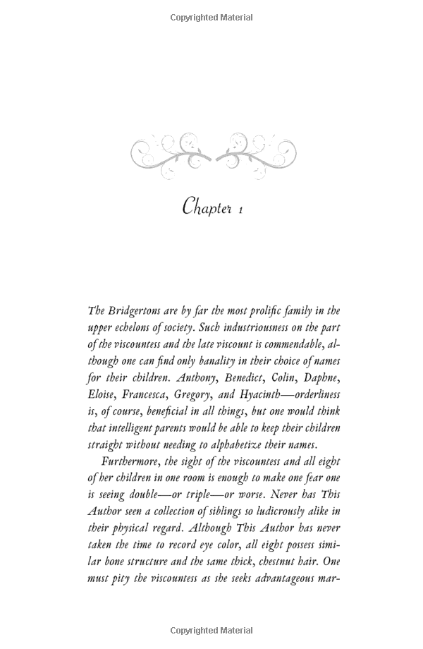 By all accounts, Simon Basset is on the verge of proposing to his best friend's sister, the lovely - and almost-on-the-shelf - Daphne Bridgerton. But the two of them know the truth - it's all an elaborate plan to keep Simon free from marriage-minded society mothers. And as for Daphne, surely she will attract some worthy suitors now that it seems a duke has declared her desirable . . .