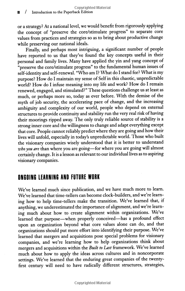"This is not a book about charismatic visionary leaders. It is not about visionary product concepts or visionary products or visionary market insights. Nor is it about just having a corporate vision. This is a