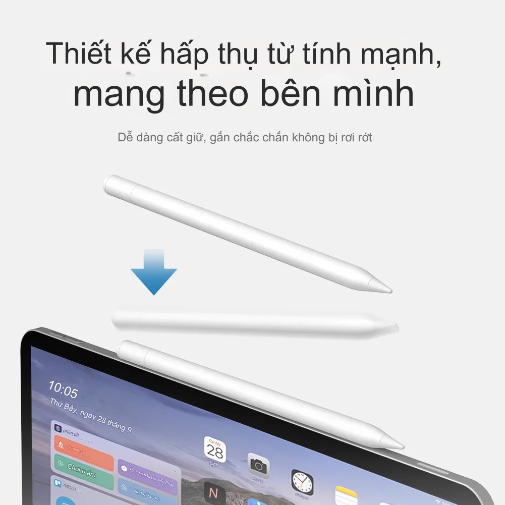- Nam châm mạnh mẽ giúp bút dính chắc vào iPad, dễ dàng lưu trữ và di chuyển.