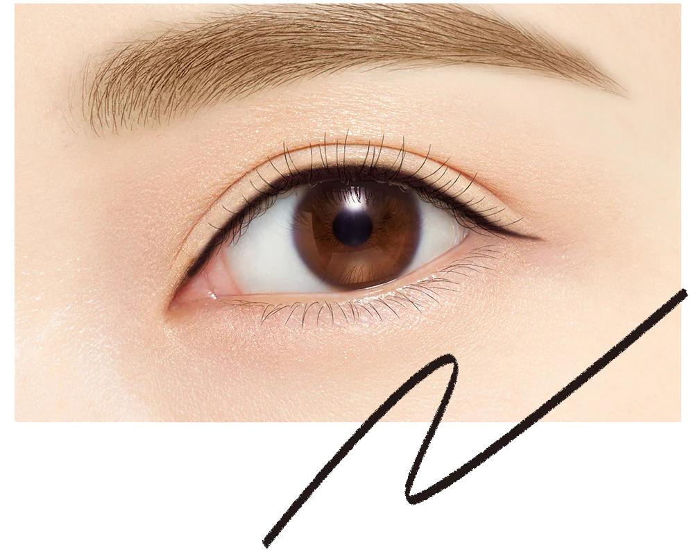 Dùng tay nhẹ nhàng kéo căng mi mắt, đặt bút kẻ sát mí từ gốc mí mắt về đuôi mắt, cho đến khi có đường kẻ phù hợp.