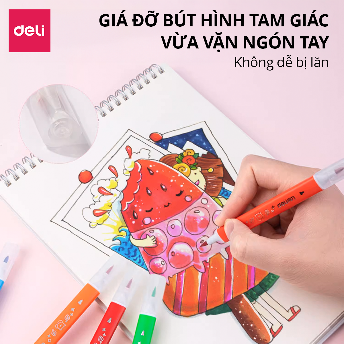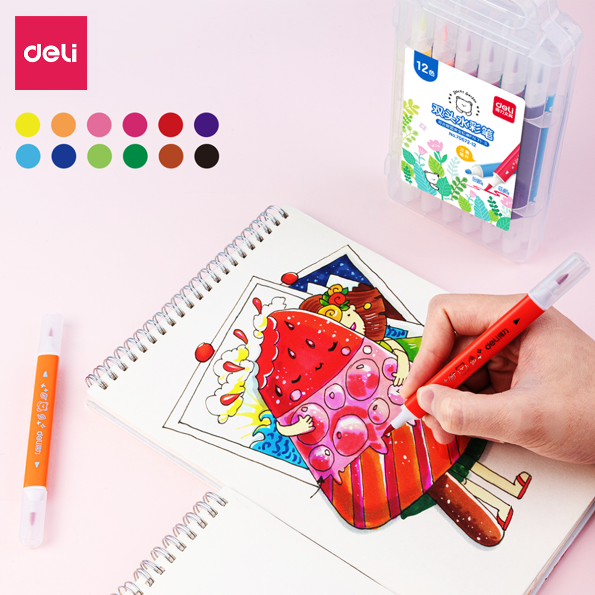 ✨Bút Màu Dạ Marker 2 Đầu Deli - Bút Dạ Nước 12/24/36/48 Màu Vẽ Tranh Viết Calligraphy Chuyên Nghiệp - Kèm Hộp Nhựa