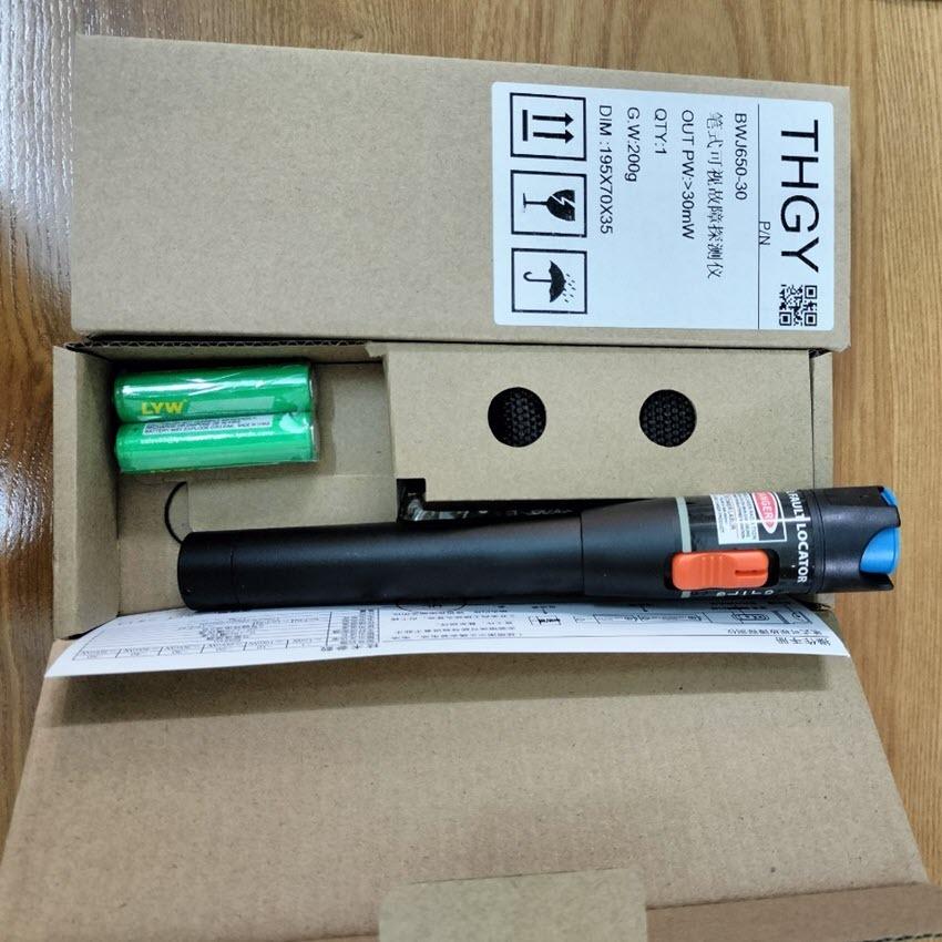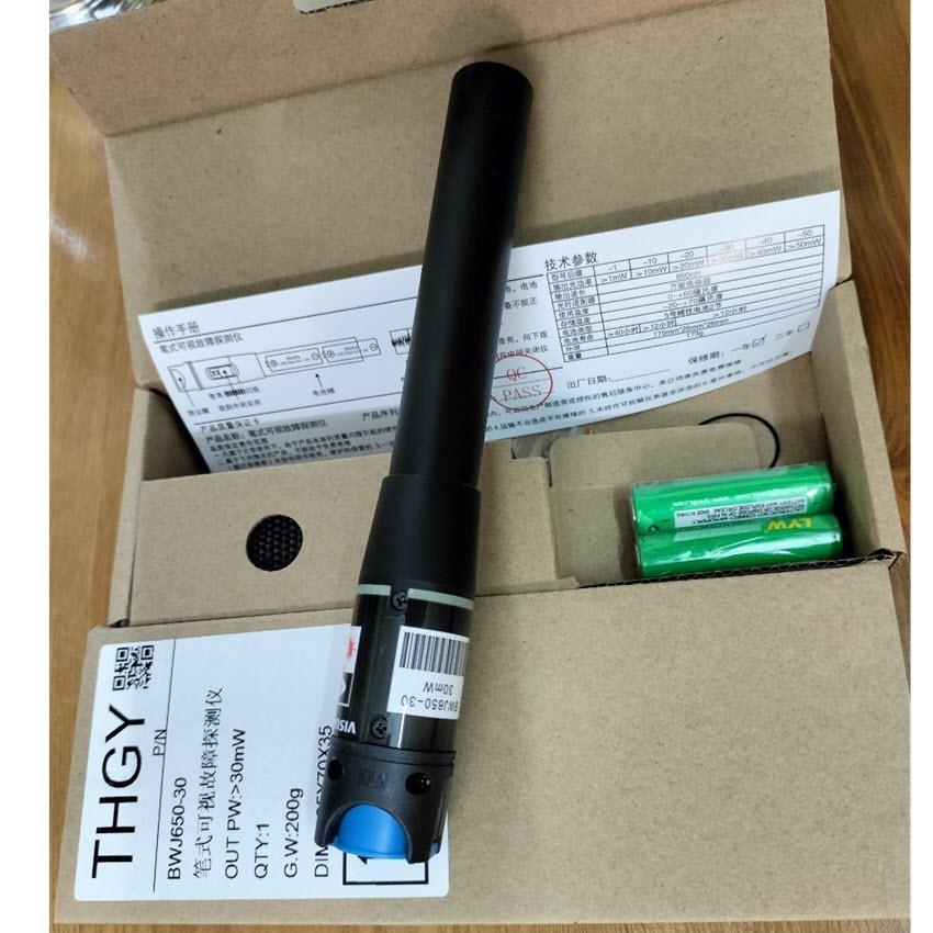 Bút test sợi quang quang BWJ650-30 (hay còn gọi là bút soi quang, đèn soi cáp quang,…) là dụng cụ phát hiện lỗi và đo thông sợi quang bằng ánh sáng nhìn thấy, với công suất phát lên tới >30mW cho phép bạn kiểm tra sợi cáp quang tối đa lên tới 30Km .