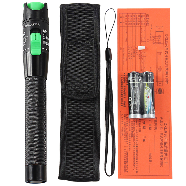Thông Số kỹ thuật Bút soi cáp quang 20km Chiều dài tối đa có thể test : 20km Đầu ra bước sóng : 650nm Công suất phát quang : 20mW Hỗ trợ đầu nối tiêu chuẩn 2.5mm như FC/ST/FC/SC Dùng Pin AA Lưu ý : nên dùng các loại pin Alkaline tốt như Energizer