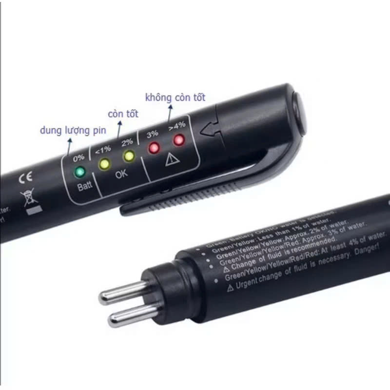 - Nếu báo đèn Led màu xanh lá cây, hàm lượng nước , kim loại trong dầu phanh < 1.5%, nghĩa là dầu phanh còn tốt.