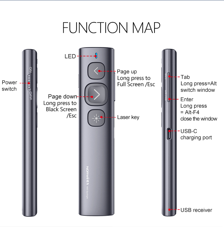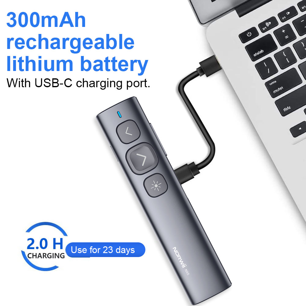 Bút trình chiếu cho màn hình LED Norwii N96S với Laser màu xanh là lựa chọn hoàn hảo cho các bài thuyết trình, giảng dạy và hội nghị, với thiết kế tinh tế và tính