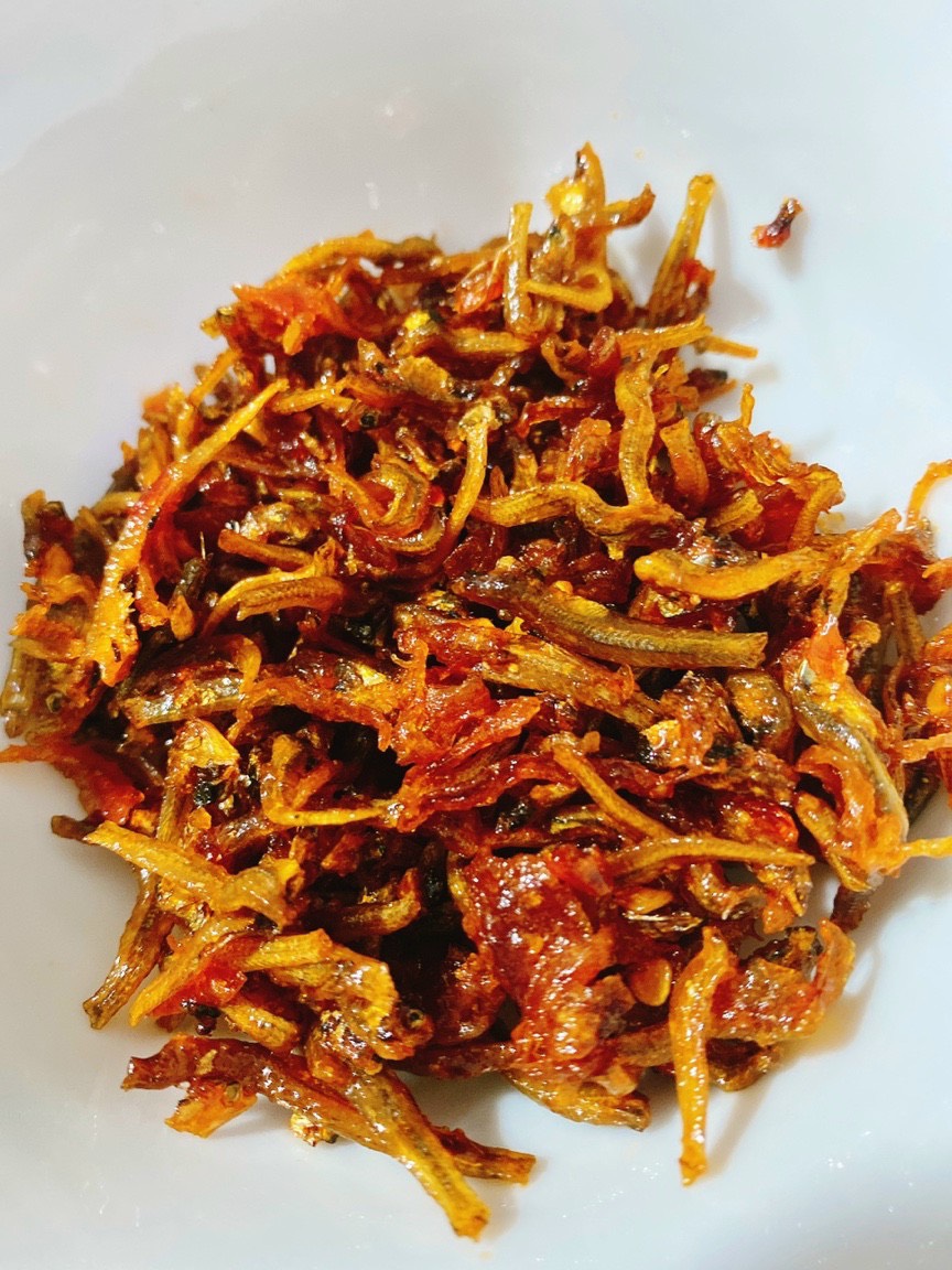 Cá cơm chiên giòn sau đó rim lại cùng tỏi ớt, thơm lừng. Vị ngọt của cá tươi, vị mằn mặn cay cay thơm thơm của các loại gia vị Cá cơm là món ăn