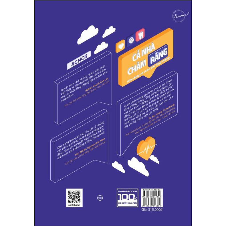 Quyển sách nhỏ bạn đang cầm trên tay là một sản phẩm được ra miệng cho cộng đồng người Việt trên tinh thần “Phòng bệnh hơn chữa bệnh”. Hiểu biết và thực hành chăm sóc răng miệng đúng là cách chúng ta tự chăm sóc và yêu thương bản thân, trao gửi thông tin hữu ích đến người thân, bạn bè để lan tỏa những giá trị tốt đẹp, góp phần tạo nên một cuộc sống tràn đầy niềm vui và sự tự tin. Đó cũng chính là thông điệp của cuốn sách này.