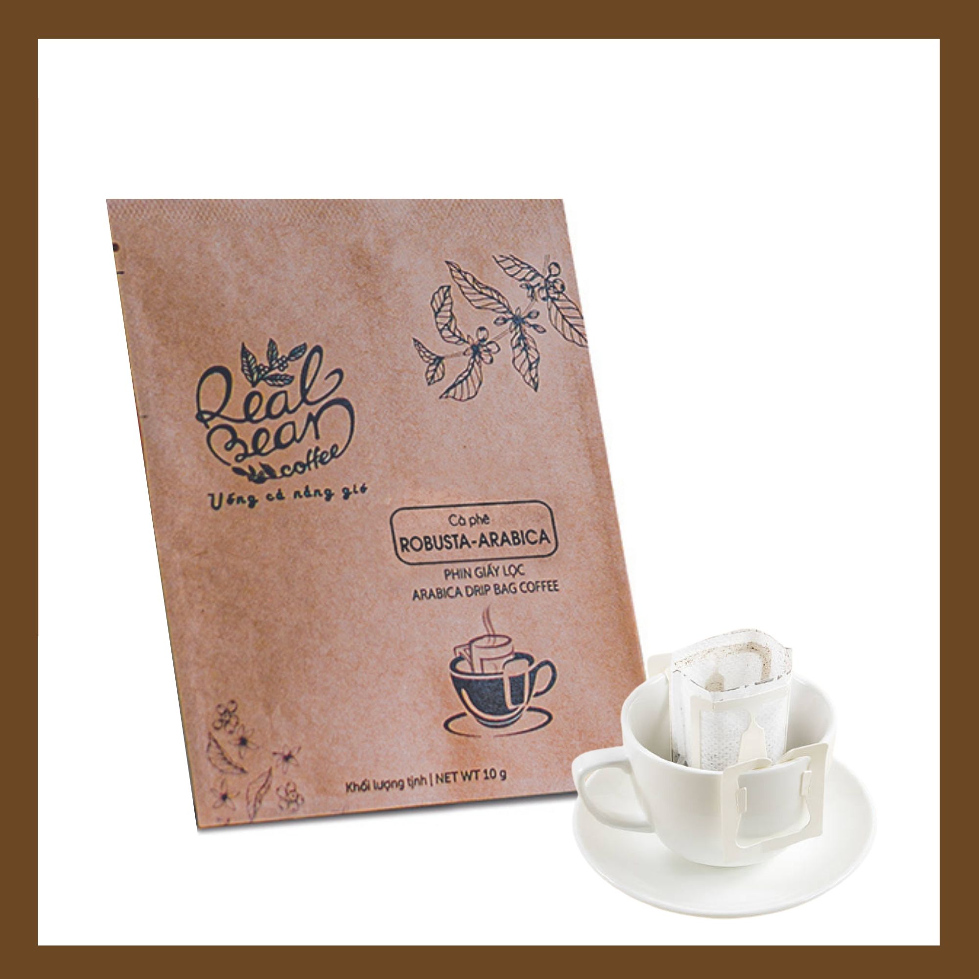 ✨Cà phê phin giấy tiện lợi – Hộp 10 Gói – 100% Rang Mộc – Vị Đậm, Thơm Nồng – REAL BEAN COFFEE