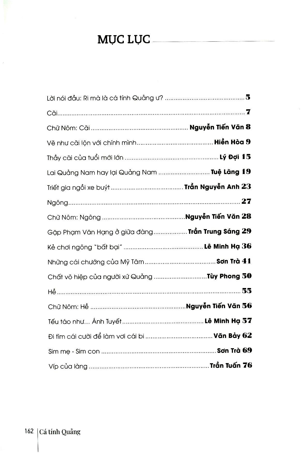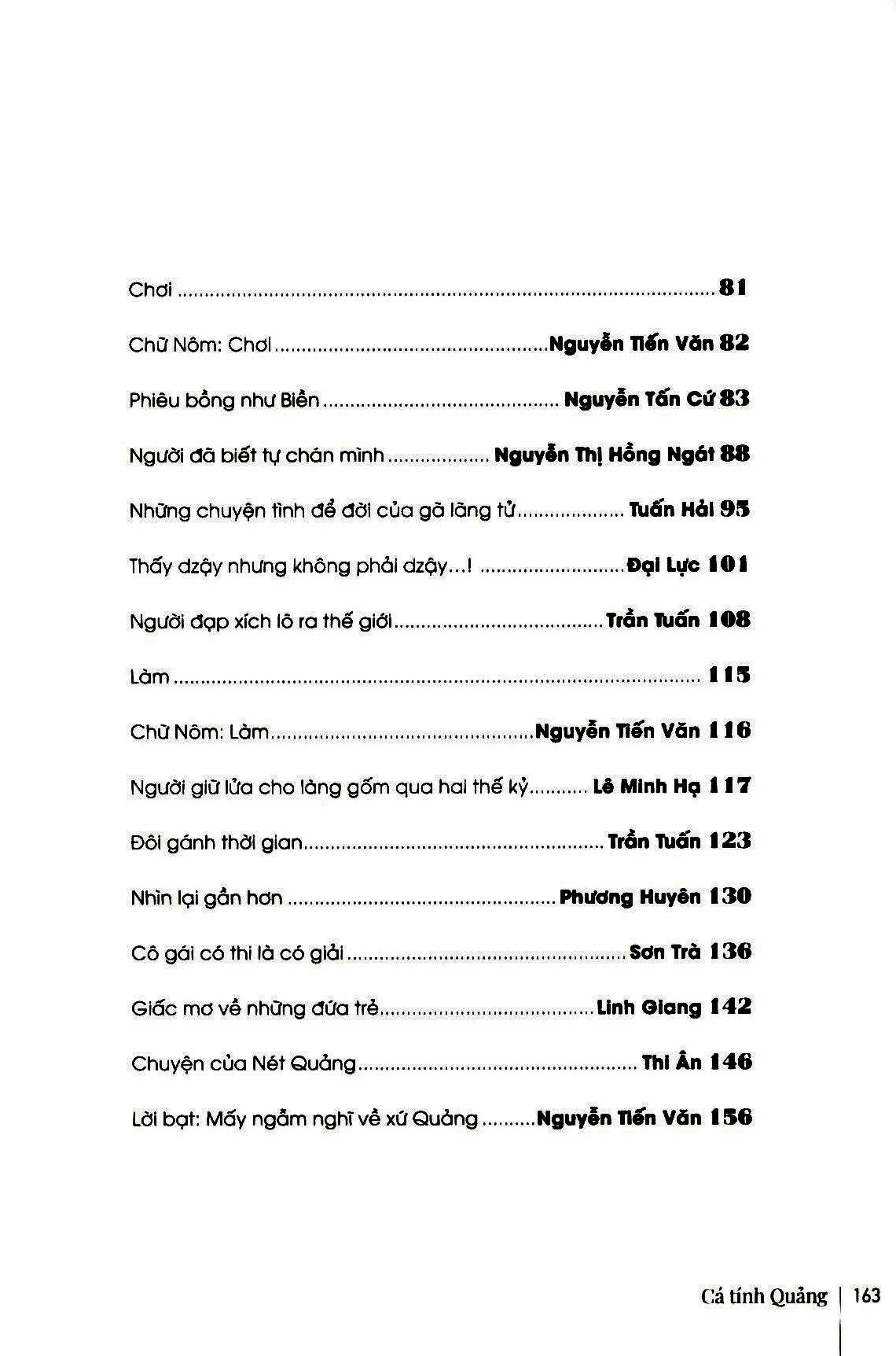Nhiều bài trong sách này từng được in trên báo và tạp chí, nay tác giả tự nhuận sắc để góp mặt trong tuyển tập này. Một vài bài in theo sự lựa chọn, biên tập của chính nhân vật trong bài. Sách với bìa và cover từng phần do họa sĩ Lê Kinh Tài thiết kế, biến tấu từ hình tuợng con tò he, khá phổ biến một thời tại xứ Quảng, ngày nay còn thấy nhiều ở Hội An và các chợ làng xã. Tò he có lẽ là sản phẩm đi cùng bước chân mở cõi vào Nam, mà xứ Quảng - với trắc trở của đèo Hải Vân và cuộc đối thoại trực tiếp với văn minh Chăm - là một cột mốc lớn. Nếu có một chút so sánh, có thể thấy tò he ở xứ Quảng có nhiều nét riêng so với tò he ở làng Xuân La (Phượng Dực, Phú Xuyên, Hà Nội) - vốn đuợc cho là một trong những nơi phát xuất của nghề tò he. Tìm về cá tính Quảng, bản sắc Quả đôi khi cũng là tìm về nét riêng của những vật thể và phi vật thể như vậy.