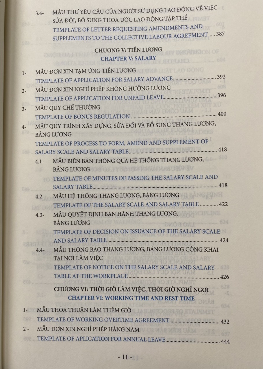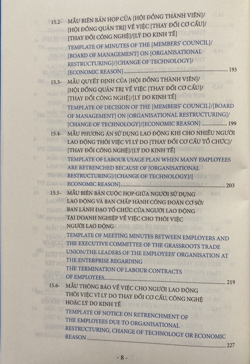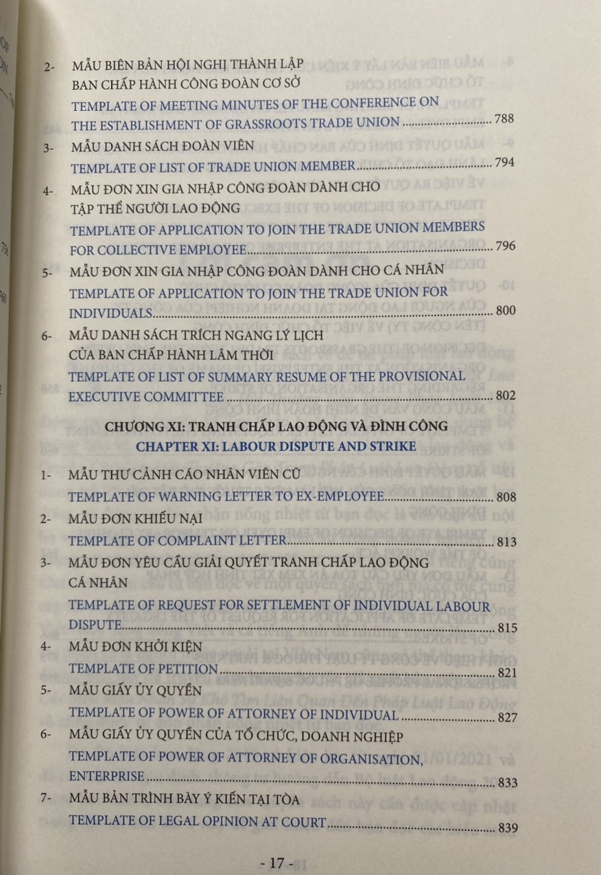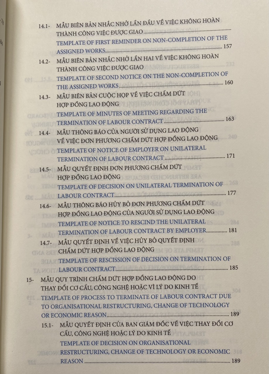 Các biểu mẫu nhân sự về pháp luật lao động được trình bày dưới dạng song ngữ Việt Anh giúp độc giả thuận tiện tham chiếu và áp dụng phù hợp.