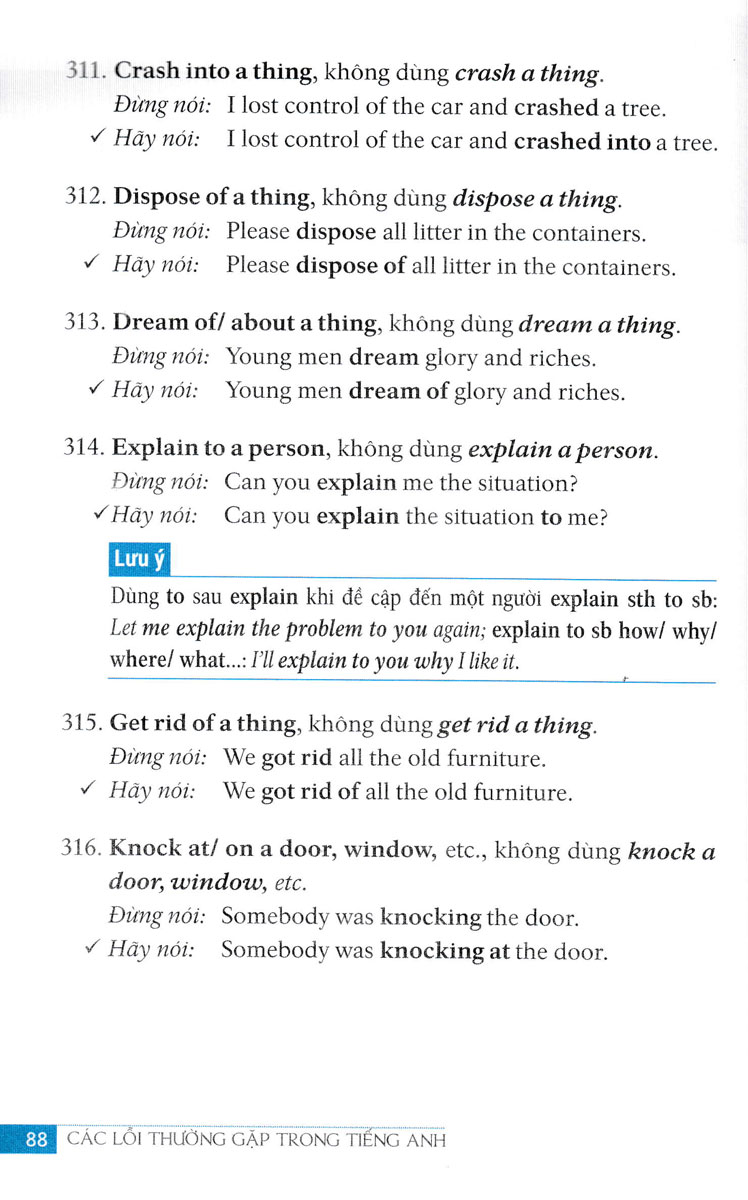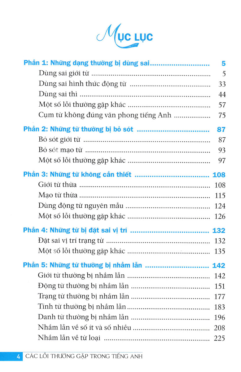 Cuốn sách này có thể không bao quát hết tất cả các lỗi thường gặp trong tiếng Anh, nhưng các ví dụ trong sách là những lỗi rất phổ biến. Mong rằng CÁC LỖI THƯỜNG GẶP TRONG TIẾNG ANH sẽ phần nào giúp ích cho các bạn trong quá trình học và thực hành tiếng Anh.